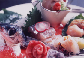 夏は活イカ姿造り、岩ガ二、とびうお、アワビ、サザエ